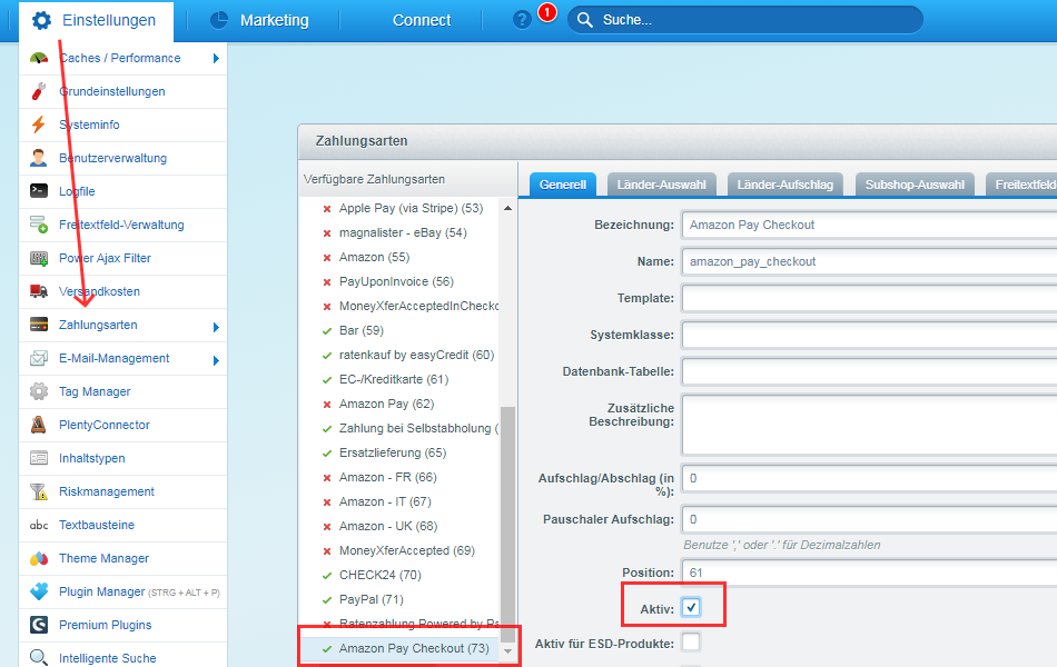 Prüft bitte, ob die Zahlungsart "Amazon Pay Checkout" unter Einstellungen → Zahlungsarten aktiv ist.
